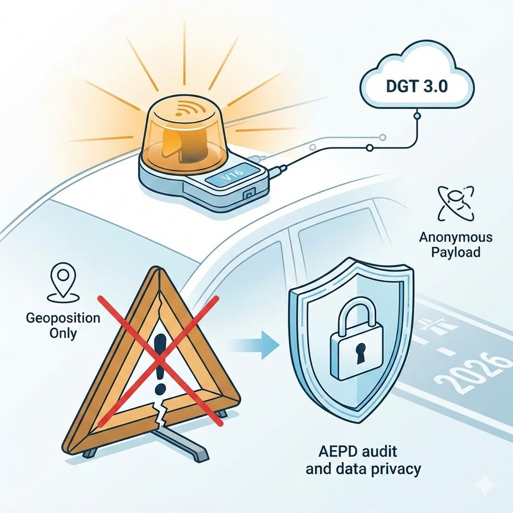 Sin embargo, la mayor fricción se centra en la ciberseguridad y la privacidad. Conectar cada vehículo a una base de datos centralizada genera un temor legítimo a la vigilancia masiva. Para mitigar esto, la Agencia Española de Protección de Datos (AEPD) ha auditado la arquitectura del sistema, confirmando que la adquisición del equipo no requiere vinculación de datos personales del comprador con la administración. Técnicamente, el dispositivo permanece «durmiente» y no transmite telemetría hasta que el usuario lo activa físicamente. El payload enviado está estrictamente minimizado: no transmite la identidad del conductor, la matrícula ni el número de bastidor, limitándose a la geoposición. Al apagarse, el flujo de datos cesa inmediatamente, imposibilitando la creación de historiales de desplazamiento. Aunque mantengo mi escepticismo sobre los sistemas gubernamentales, la capa de red de este dispositivo opera como una alerta asíncrona y anónima, alejándose de los temidos rastreos continuos.