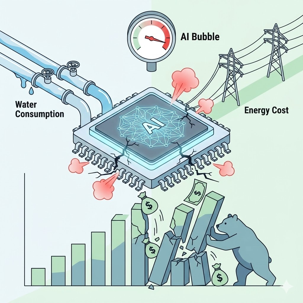 El cuello de botella estructural reside en el brutal incremento de los gastos operativos (OPEX). Las inferencias de IA requieren recursos físicos masivos: una simple consulta puede consumir hasta medio litro de agua para la disipación térmica de los servidores y la energía equivalente a iluminar un LED durante cinco segundos. Si multiplicamos esto por miles de millones de peticiones diarias, la supuesta «escalabilidad infinita» colapsa. Los costes energéticos y de infraestructura crecen de manera logarítmica, muy por encima de los ingresos reales, forzando la implementación de nuevas regulaciones de sostenibilidad.