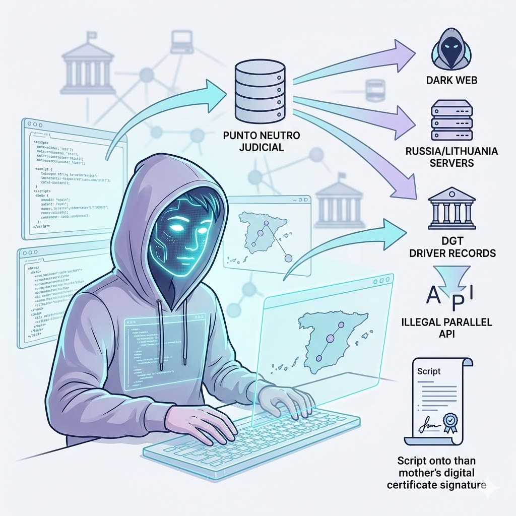 Lo que me resulta más alarmante como especialista en sistemas es la sencillez técnica con la que logran escalar privilegios, exponiendo sistemas públicos obsoletos. Un individuo de 23 años en Murcia logró volcar más de 40 millones de registros de conductores usando simplemente el certificado digital de su madre y un script automatizado. El objetivo era construir una API ilegal paralela a la DGT para vender telemetría a aseguradoras y terceros. El script pasó desapercibido hasta que el atacante intentó extraer 80.000 matrículas de golpe, activando las alertas del servidor.